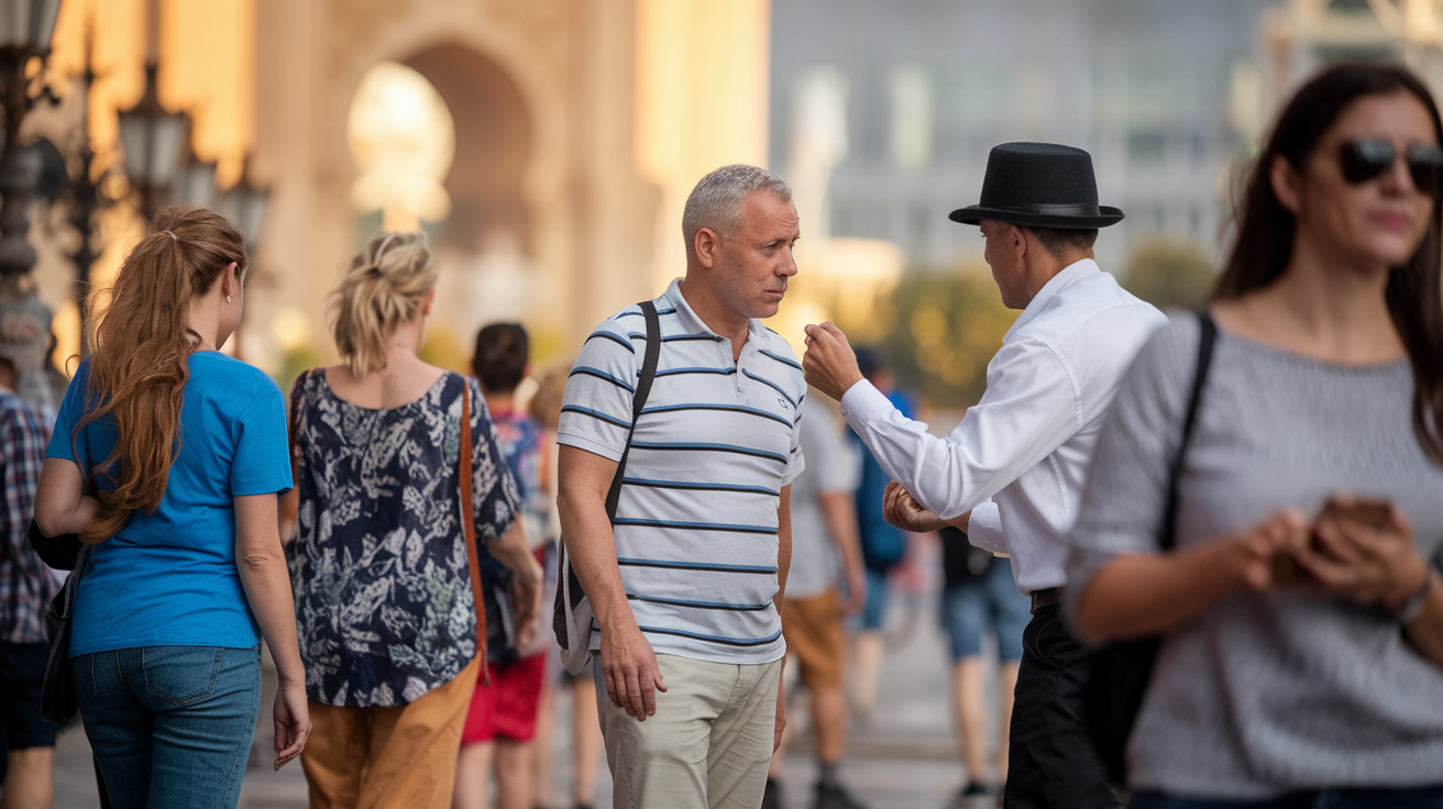 The most common setup involves a team of 2-3 people. One creates a distraction (bumping into you, asking for directions, or even “accidentally” spilling something on your clothes), while their partner swoops in for your valuables. By the time you realize what happened, they’re long gone.